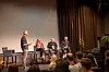 Jonas Giæver (t.h.), Geir Bjarte Hjetland og Hege R. Eriksen pratet om psykisk helse hos journalister. Einar Tho (med ryggen til) ledet seansen.Foto: Cornelia Kristiansen