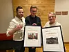 OAs reportere Marius Stavli, Espen Amundrud Solhaug og Henning Gulbrandsen kunne ta i mot heder og ære på OAs vegne.Foto: Solrun S. Snilsberg