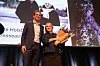 Statssekretær Erlend Hanstveit (t.v.) delte ut pris til Grete Holstad og Kim Nygård.
