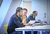 Advokat Halvard Helle representerer VG i retten. Her med sjefredaktør Gard Steiro og journalist Markus Tobiassen.Ingvild Fylling