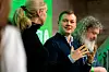 Han deler scenen med Alexandra Beverfjord, konserndirektør for innhold, produkt og teknologi i Amedia.