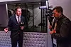 Pressesjef i Sverigedemokraterna, Henrik Winge intervjues av TV2.Ole Gunnar Onsøien
