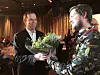 Fotograf Jacob Buchard mottok feature-prisen på vegne av ham selv og Frank Mersland. Til venstre juryleder Liv Iren Hognestad.Knut Knudsen Eigeland