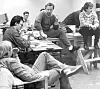 STRATEGIMØTE: Fra et møte i redaksjonsklubben til Finnmarken, sannsynligvis i 1986. Tema var lønnskrav. Fra venstre Gunnar Berg, Kurt Olsen, Yngvar Skotnes, Alf Helge Jensen og Ragnhild Gustad.Foto: Finnmarkens arkiv