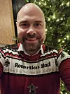 Anders Opdahl gleder seg til å feire jul med familien der han vokste opp, i Porsanger, og i Tromsø der han bor. Her her han fått julegenser av Romerikes Blad.