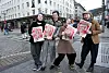 BA-ansatte delte ut avis torsdag morgen. Sjefredaktøren med hatt.Magne Turøy, BA