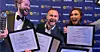 Filip Ambrosius Steinhovden (t.v), Mathias Høibakk Bergquist og Oda Oldertrøen kunne juble over priser og utmerkelser til Amedia under Global Media Awards 2025.Foto: Amedia