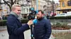 Anders Boine Verstad intervjuer Mikkel Gaup. Nå skal flere av Dagsrevyens reportasjer kjøres på samiskFoto: NRK