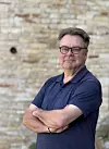 Anders Malmsten roser Vimmerby Tidning for en fremoverlent versjon av fronten.Kollasje: Skjermdump