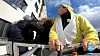 Svigerson Øyvind Janeschitz styrer liften dei fekk låna gratis av Oslo Liftutleie.NRK