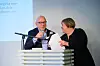 Leiar Sven Egil Omdal i Kildeutvalget under framlegging av rapport. Her leverer han rapporten til generalsekretær Elin Floberghagen i Norsk Presseforbund.Ole Alexander Saue