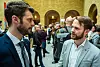Rødt-leiar Bjørnar Moxnes og Iver Aastebøl fotografert i vandrehallen på Stortinget i fjor haust.Ole Gunnar Onsøien
