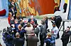 Medier samlet i vandrehallen på Stortinget. Illustrasjonsbilde fra 2018