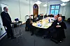 I Stockholm ble delegasjonen bestående av representanter fra politi og presse møtt med en innføring i hvordan svensk politi håndterer mediene.