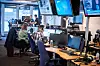 Journalister i arbeid - mest sannsynlig i Polopoly - avbildet på nyhetsdesken til NRK Troms i Tromsø.