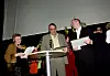 ARKIV: I 2003 stakk VG av med SKUP-prisen med Lucia-saka. Her ved Rolf Widerøe og Tor Strand (t.v.) saman med leiaren for SKUP-juryen, Britt Tangen.Anita Arntzen / SKUP / SCANPIX