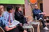 Danby Choi, Ida Elise Einarsdottir og Eirik Hoff Lysholm i paneldebatt med Sigrid SollundFoto: Torill Henriksen
