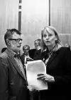 Nyere tid, altså 2012: Administrerende direktør i MBL, Randi S. Øgrey og fagsjef Helge Holbæk-Hanssen i Mediebedriftenes Landsforening.