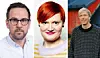Stig Arild Pettersen (fra venstre) og Heidi Bøhagen skal anmelde podkaster, mens Tore Sevheim blir ny matanmelder i BT.