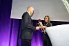 Anne Sofie Rønnfeldt får den viktige kuben fra Frank GanderFoto: Kristine Sterud