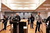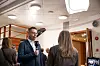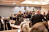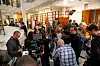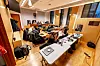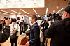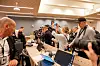 Det er ikke plass til alle journalister inne i salen. Derfor har pressen fått flere rom de kan jobbe fra.