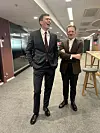 Stig Øystein Hegnar Schmidt og Bjørnar Konglevoll Bekkevard på valgkvelden i 2025.