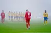Branns Robert Taylor bommer på straffen under straffesparkkonkurransen i kvalifiseringskampen til Eliteserien i fotball for menn mellom Brann og Jerv på Intility Arena i Oslo.