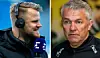 Brann-trener Kåre Ingebrigtsen reagerer på Eurosport-reporter Jonas Bergh-Johansens vinkling før den første kampen av årets sesong av Eliteserien.