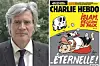 Tidligere minister Stéphane Le Foll og faksimile av forsiden til Charlie Hebdos nye magasin.