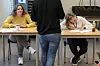 Fædrelandsvennen-journalistene Eva Myklebust (til venstre) og Christina Østtveit måtte blant annet ta matteprøve under sitt besøk hos 9C. Resultatet ble henholdsvis 4- og 3+ i karakterboka. – Det var helt forferdelig. Jeg husket ingenting, medgir Myklebust. Jacob J. Buchard