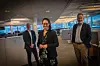 Sjefredaktør i Dagens Næringsliv, Janne Johannessen, sammen med konsernsjef Trond Sundnes og avtroppende sjefredaktør Amund Djuve