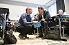 Konsernsjef Per-Magne Tveiten (t.v.) og avtroppende styreleder Tomas Brunegård før forrige ukes generalforsamling i Mentor Medier.