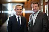 Jon Gelius (til høyre) får blant annet med seg NATO-sjef Jens Stoltenberg som gjest i sitt oppsummeringsprogram.