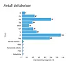 Denne tabellen viser prosentvis andel av de politiske deltakelsene. Den viser at det er Høyre, Arbeiderpartiet og Frp som har flest partipolitiske opptredener hittil i 2019.