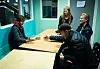På lærerværelset møter vi Ragnhild Krogh. Hun har vært lærer i norsk og fransk ved skolen i 40 år og sitter for anledningen og leser Klassekampen.