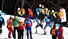 Langrenn 4x5 km. stafett kvinner i Alpensia Cross-Country Skiing Centre under vinter-OL i Pyeongchang. Marit Bjørgen (t.v.) og Stina Nilsson fra Sverige på vei opp siste bakke, der det står medlemmer av både svensk og norsk støtteapparat langs løypa.Foto: Lise Åserud / NTB scanpix