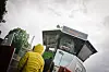 Mens festen tar seg opp i Kulturhuset står Farzana Hossen sine bilder av kvinner som har vært utsett for syreangrep i regnet.