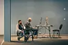 Kanskje festivalens eldste besøkende? Jan Bendix Lien (95) ser filmen om seg selv sammen med barnebarnet Torbjørn Mostrøm. Filmen er laget av undertegnede og var en del av utstillingen Langstrakt, som viste 2. klasse på Fotojournalistikk-studiet ved Høgskolen i Oslo og Akershus sine Norges-reportasjer.