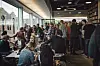 Mellom utstillingsåpninger og foredrag kan man slå av en prat med kjente fotografer. Her signerer den danske fotografen Joakim Eskildsen fotobok for en ivrig fotoentusiast.