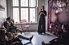 Ellen Lande Gossner hjelper sine studenter i 1. Klasse ved fotojournalistikk-studiet å velge ut bilder til utstillingen av et prosjekt om Kolbotn. I bakgrunnen ses deler av popup-utstillingen Langstrakt.