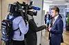 Mathias Fischer snakkar med pressa på sin første dag som statssekretær i Klima- og miljødepartementet.Jan Magnus Weiberg-Aurdal