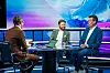 TV 2-trioen Jan-Henrik Børslid (t.v.), Marius Skjelbæk og Jesper Mathisen i studio under premieren på Eliteserien.