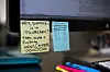 Ved siden av skjermen står ein kopp med påskrifta «Thorvald´s Lutefisk Soup» (!) og på veggen heng postkort frå Noreg. Ein mjølkesjokolade frå Freia merka importvare ligg på pulten. Ellers: Ein postit-lapp med eliteserie-datoar, og ein oppfordring om å make a fucking newsletter.