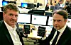 Politisk journalist Kjetil Løset (t.h.), her med valgekspert Terje Sørensen, da Medier24 besøkte TV 2 litt over midnatt.