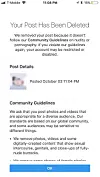 Dette er begrunnelsen for at bildet ble sletta fra Instagram.Instagram