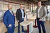 NTB-sjef Mads Yngve Storvik (t.v), Per Brikt Olsen, Adm. direktør i Fagpressen og Kenneth Harstad, prosjektsjef Aspelin Ramm under overtakelse av Pressens Hus fredag.