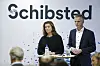 Konsernsjef i Schibsted, Kristin Skogen Lund (t.v.) og finansdirektør Ragnar Kårhus presenterte resultater for 3. kvartal fredag morgen.