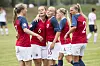 Noor Eckhoff, Andrea Norheim, Vilde Birkeli, Camila Huseby og Malin Sunde jubler etter 1-0 målet under UEFA European Women's U-19 mellom Frankrike og Norge i Herti stadium i Zug, Sveits