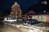 Flom i Skjåk: Flere biler måtte stå stille da flommen på kort tid oversvømte området rundt Skjåk etter store nedbørsmengder.