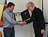 Redaktør Fred C. Gjestad overrakte Ole Erik Eier medalje og diplom fra Norges Vel for lang og tro tjeneste.